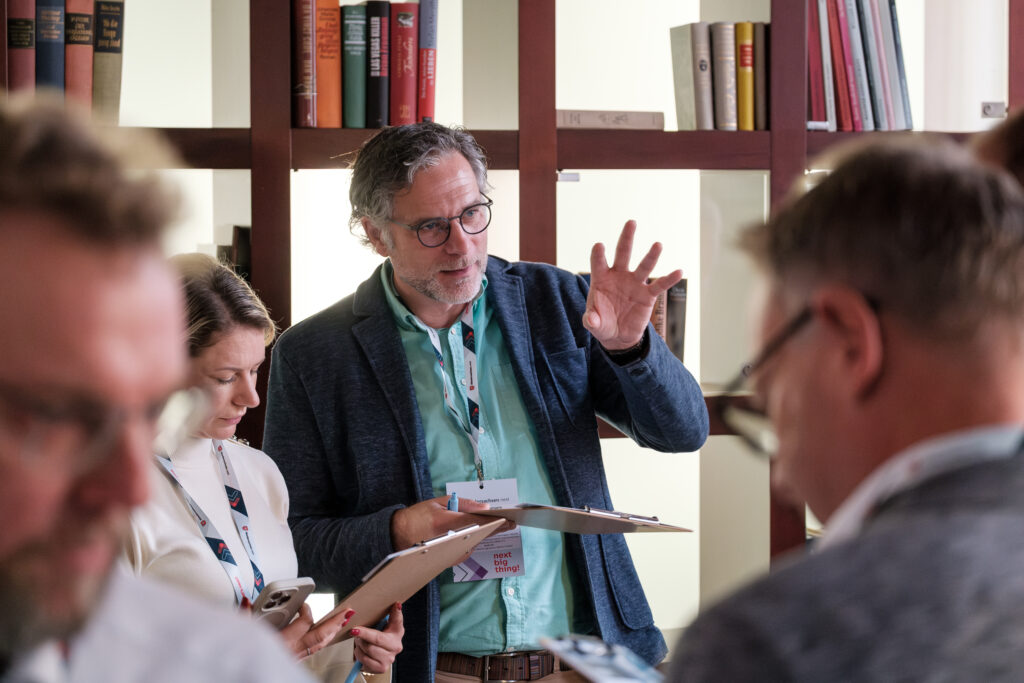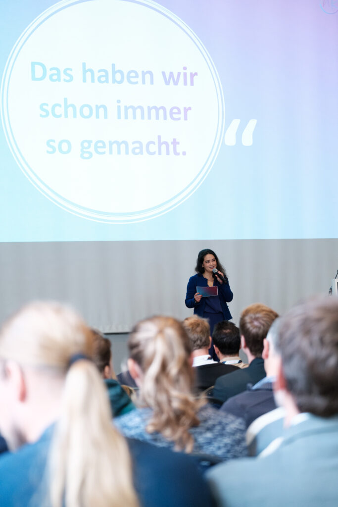 Die Fotos zeigen zentrale Programmpunkte wie Keynotes, Paneldiskussionen und Impulsvorträge ebenso wie spontane Gespräche im Foyer oder konzentrierte Diskussionen in den Sessions. Gerade diese Mischung aus offizieller Bühne und persönlichem Austausch macht den Charakter des Events sichtbar und transportiert die inhaltliche Relevanz über die Veranstaltung hinaus.