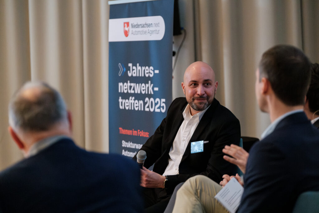 Diese Inhalte spiegeln sich auch in der Bildsprache wider: fokussierte Zuhörer, engagierte Diskussionen auf der Bühne und eine klare visuelle Verbindung zwischen Referenten und Publikum. Die fotografische Dokumentation unterstützt damit die inhaltliche Kommunikation der Veranstaltung, beispielsweise für Rückblicke, Pressearbeit oder die Weiterverwendung auf der Website von Niedersachsen.next Automotive.